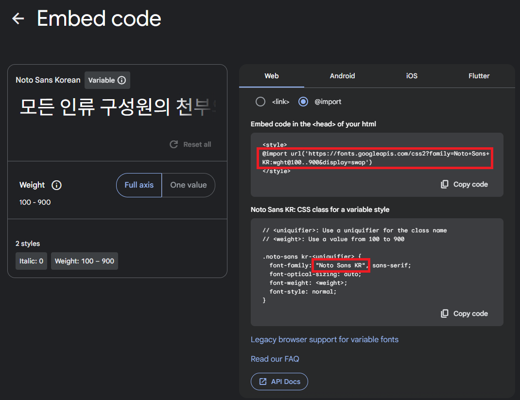 tailwindcss 간단하게 웹폰트 적용하기 필요한 준비물: 폰트 cdn 주소, 폰트 이름 영문 폰트는 구글 폰트에서 https://fonts.google.com/ 한글 폰트는 눈누에서 https://noonnu.cc/ 1.폰트 가져오기 css파일의 @tailwind 위에서 @import문을 사용해 불러오세요 /* ✅ /globals.css */ @import url("https://cdn.jsdelivr.net/gh/orioncactus/pretendard@v1.3.9/dist/web/variable/pretendardvariable.min.css"); @tailwind base; @tailwind components; @tailwind utilities; /* ❌ @tailwind 아래에서 사용하지..